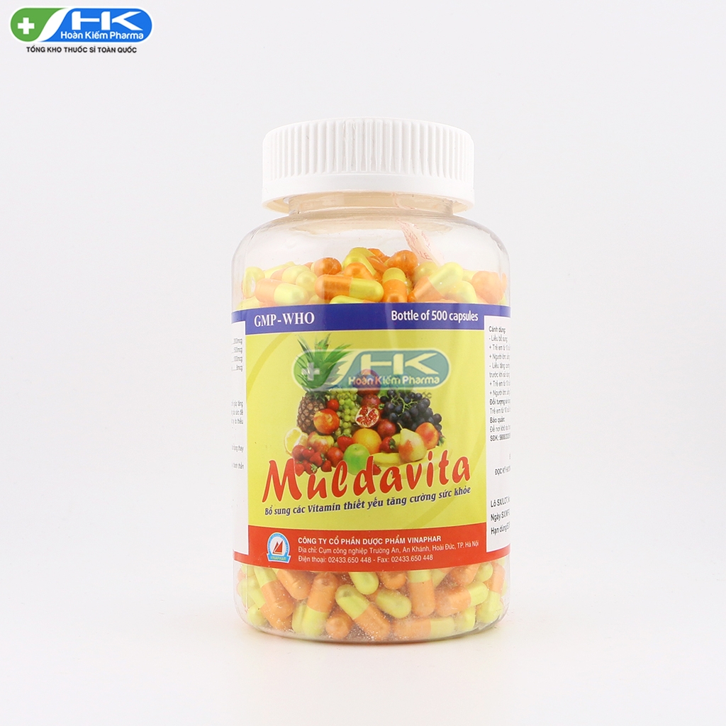 Muldavita - Chai 500 viên nang cứng - Vinaphar(Vitamin B1,B2,B5 10mg; Vitamin B9 0,2mg)